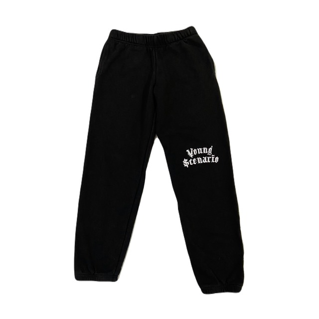 【¥oung $cenario】 オリジナルスウェットパンツ【black】 左の膝上に¥oung $cenarioのロゴをワンポイントだけつけ、シンプルでオシャレなデザインになっています。 brack×whiteの色合いでロゴのかっこよさを引き立ててくれます!もちろん男女ともに着用可能です! ロングTシャツとのセットアップ着用がクールな感じになれる洋服に仕上げました。 モデル着用サイズ【black】 身長_170cm サイズ_Sサイズ ※参考にしてください