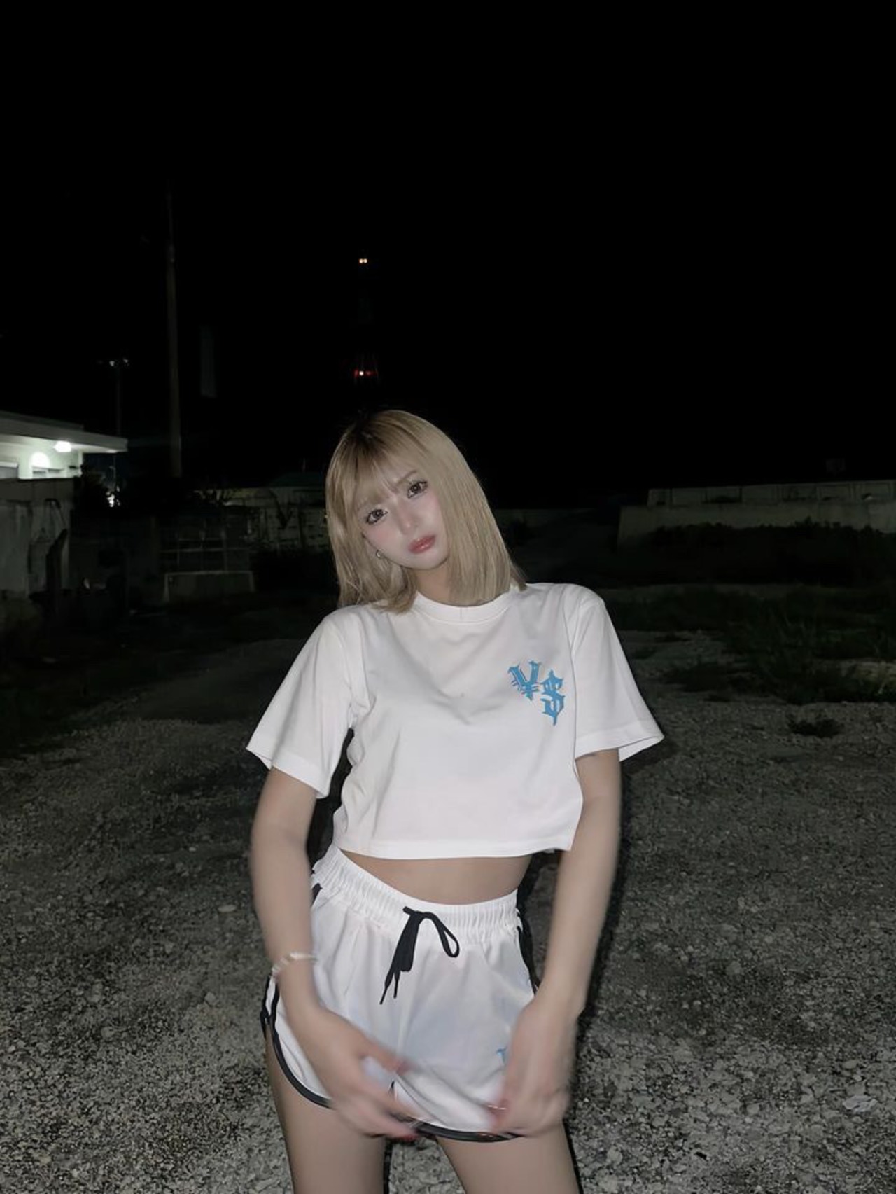 オリジナルロゴのクロップド丈Tシャツ【white】